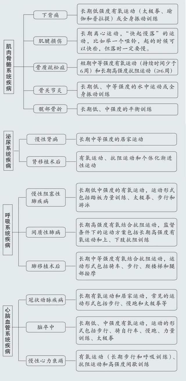 “運動干預只是一種輔助療法,但并不能說可以治療該疾病。”張一民教授表示,現(xiàn)在強調(diào)體醫(yī)融合,在給病人開藥物處方的同時再開運動處方,醫(yī)生會根據(jù)病人的患病情況,提出建議運動的方式、運動強度、運動時間、運動頻率等,注意事項等。開具運動處方最好由運動專家與臨床醫(yī)生協(xié)商制定。