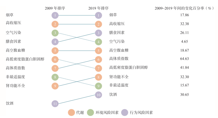 2009和2019年,影響中國60歲及以上老年人群健康的危險因素順序發生變化