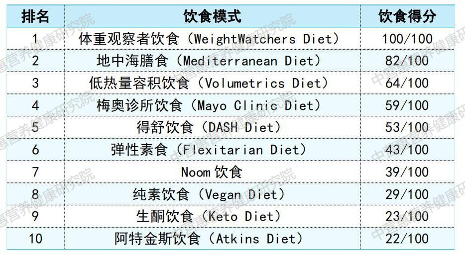 2024年初,《美國新聞與世界報道》發布了最佳減肥飲食排名,體重觀察者飲食、地中海飲食、低熱量容積飲食位列前三。以下列出了排名前十位的最佳減肥飲食以及飲食得分(表2),供大家參考。