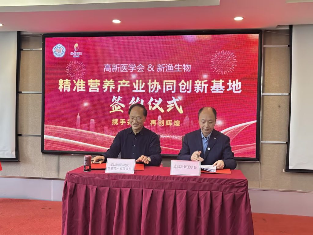 簽約儀式上,成都高新醫(yī)學(xué)會(huì)醫(yī)工融合協(xié)同創(chuàng)新中心馮懷志主任和四川新漁現(xiàn)代生物技術(shù)有限公司董事長(zhǎng)馬建中分別致辭,表達(dá)了雙方對(duì)此次合作的高度重視和美好愿景,隨后雙方代表共同簽署了合作協(xié)議。簽約儀式結(jié)束后還舉行了成都高新醫(yī)學(xué)會(huì)精準(zhǔn)營(yíng)養(yǎng)產(chǎn)業(yè)協(xié)同創(chuàng)新基地的授牌儀式。