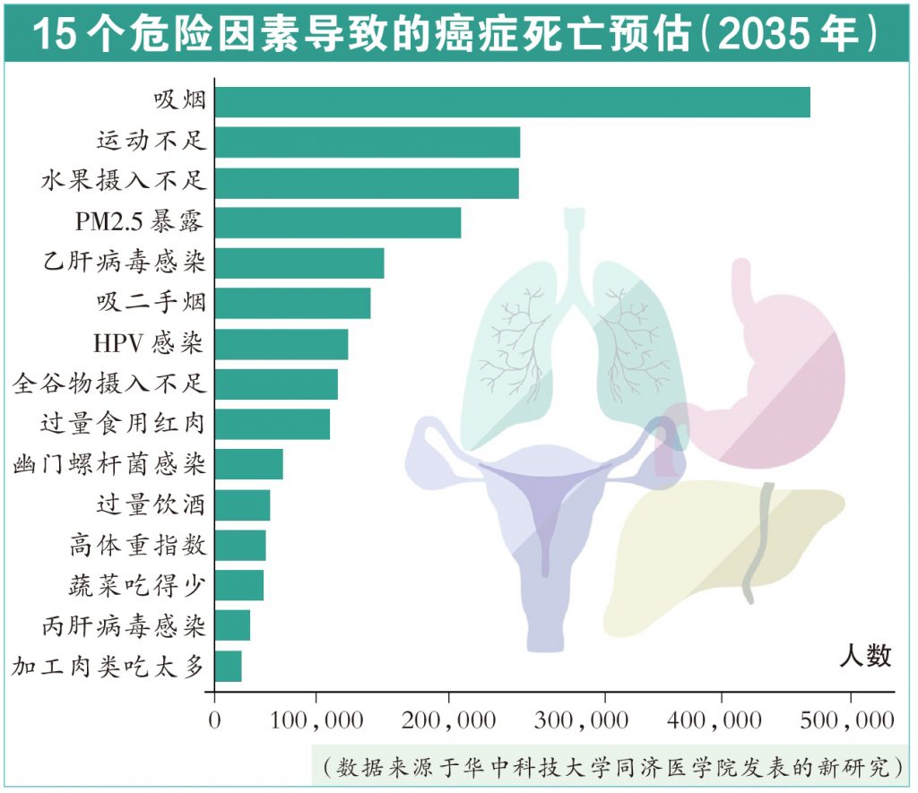 國家癌癥中心黨委書記張勇指出,癌癥是多種危險因素長期積累的慢性病,約40%的癌癥可通過控制危險因素和改善生活方式預防。目前,全球已確定127種人類致癌物和95種可能致癌物。