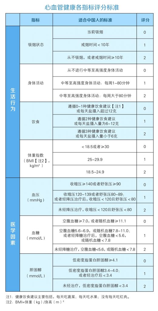 研究人員對美國心臟協會發布的評分標準進行了修改,以更適應中國人。7項指標具體評分標準見下圖,得分越高表明該指標越健康。